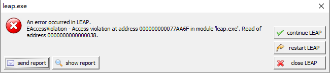 Hi, there was no response when I clicked the TAB with the mouse, followed by an error dialog.LEAP had to be restarted to return to normal, but the error still occurred. I don't know how to solve it.