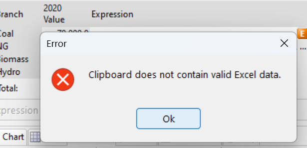An error occurs when use the Paste Link to Excel to input data. It shows Clipboard does not contain valid data. Could someone help me to resolve this issue? Thank you.