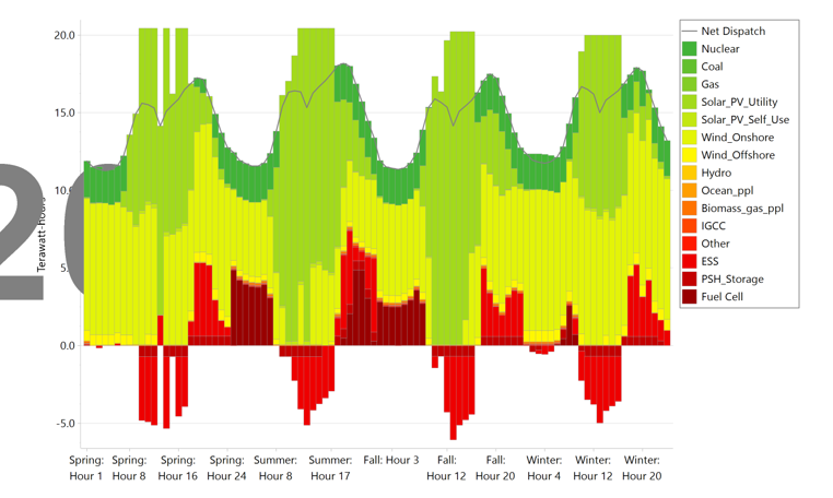 Q1. I've set up ESS as a generation technology. I'm trying to model a 100% RE + ESS system for 2050. In the picture attached, the ESS does not seem to provide energy in the 0:00~8:00 hours. In LEAP, can ESS save energy in the afternoon hours, and release that back into the grid during the 0:00~8:00 early morning hours? My model is four-seasons 24-hrs, 96 time slices. I've input the variability of RE technologies into yearly profiles.