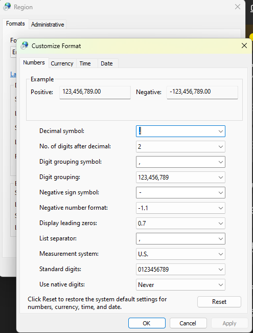 I've been struggling with an issue related to the decimal symbol in LEAP. As an Indonesian, my regional settings use a comma (,) as the decimal symbol, and I initially assumed that LEAP would follow my PC’s regional settings. However, even after adjusting the advanced settings for my region and language in Windows, LEAP still doesn’t automatically switch to using the comma.